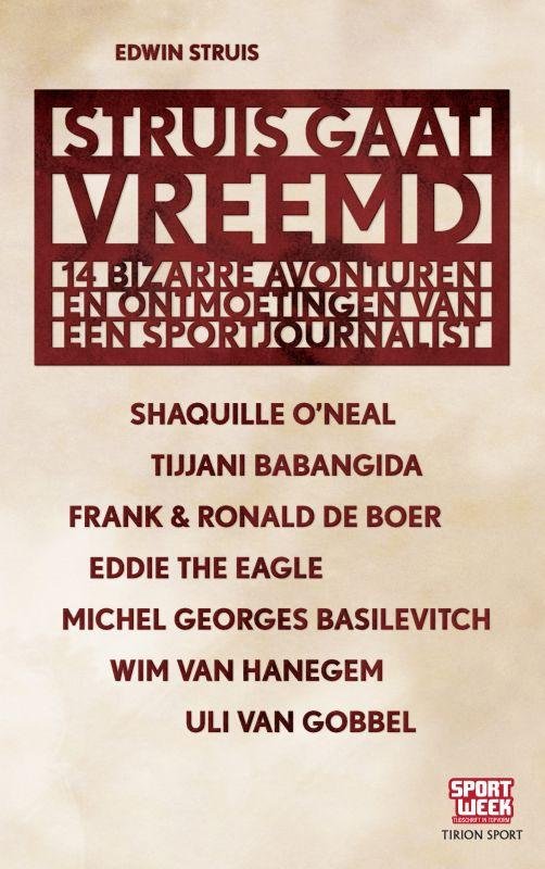 'Hij eet toch niet de hele voorraad zoete koek op?' moppert Wim van Hanegem tegen zijn vrouw Marianna als hij Edwin Struis aantreft in zijn woonkamer. In dat soort situaties komt Struis dus altijd terecht in zijn werk als verslaggever voor Sportweek. Rare avonturen, bizarre situaties, vreemde ontmoetingen.