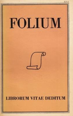 Utrecht, Beijers, 1951-1957. Complete set van vijf jaargangen, alles wat verscheen. 30 nummers in 15 afleveringen (enkele dubbelnummers, driedubbelnummers en zelfs één zesdubbelnummer!). Jaargang III, aflevering 2 bestaat niet: de paginaring van aflevering 1 van dat jaar gaat door in aflevering 2/3. COMPLEET. De volledige titel van dit boekentijdschrift luidt: 'Folium librorum vitae deditum', wat 'blad gewijd aan het boekenleven' betekent. Het werd uitgegeven door het indertijd zeer gerenommeerde Utrechtse antiquariaat en veilinghuis J.L. Beijers. Het stond onder redactie van de bekende veilinghouder H.L. Gumbert (1903-1994). Folium bevat bijdragen van onder andere M. Buisman, Dick Dooijes, H. de la Fontaine Verwey, B. de Graaff, G.H. 's-Gravesande (over De Zilverdistel), H.L. Gumbert, Abraham Horodisch (artikel in drie delen over Oscar Wilde's 'Ballad of Reading Gaol'), Chris Leeflang (over Stichting De Roos) en de toen nog piepjonge Johan Polak. Deze set komt uit de nalatenschap van antiquaar en Folium-medewerker Bob de Graaff, die ook correcties en aanvullingen aanbracht in zijn artikel over Alardus Amstelredamus. Bijgevoegd: enige correspondentie gericht aan Bob de Graaff (o.a. vier briefkaarten van M.E. Kronenberg), een rondschrijven van Gumbert en enkele registers. Over dit tijdschrift leze men: P.J. Buijnsters, 'Het Utrechtse boekentijdschrift Folium (1951-1957)'. In: Geboekt in jaargangen. Anderhalve eeuw boekentijdschriften in Nederland (speciale aflevering van De Boekenwereld, jaargang 10, afl 5), p. 80-83 & 112.