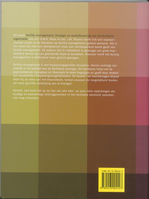 "Werkboek behorend bij het boek Facility Management Strategie en bedrijfsvoering van de facilitaire organisatie".Het werkboek helpt bij het leren begrijpen van de gepresenteerde concepten en theorieën en geeft door middel van voorbeelden toepassingsmogelijkheden. De kennis- en inzichtvragen blijven dicht bij de tekst van het theorieboek, terwijl de casussen de mogelijkheid bieden om meer gerichte verdieping aan te brengen. Kortom, een boek dat op de lijst van alle hbo- en post- mbo-opleidingen die huidige en toekomstige leidinggevenden in het facilitaire werkveld opleiden, niet mag ontbreken.Ontdek ook onze opleiding:Basisopleiding facilitymanagement