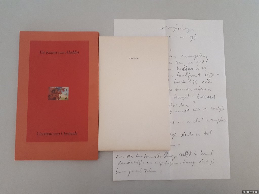 | Bijzonderheden: | Paperback; 1979; Conditie: Goed; Oorspronkelijk omslag, oblong, ca. 21x13cm, illustraties in z/w. Gesigneerd met opdracht aan Paul [Hefting] in potlood in het colofon door Geertjan van Oostende + handgeschreven en gesigneerde brief aan Paul [Hefti... |