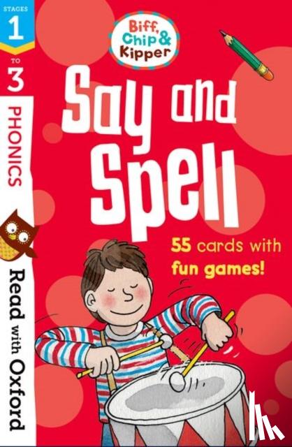 Flaptekst Read with Oxford: Biff, Chip and Kipper: Say and Spell flashcards are a fun way for children to practise reading and spelling skills. The flashcards are ideal for children who are growing in reading confidence. Read with Oxford offers an exciting range of carefully levelled resources to build your child's reading confidence. |