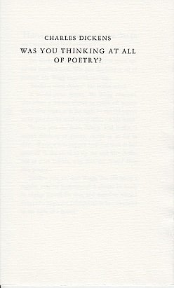 DICKENS, Charles - Was you thinking at all of poetry?