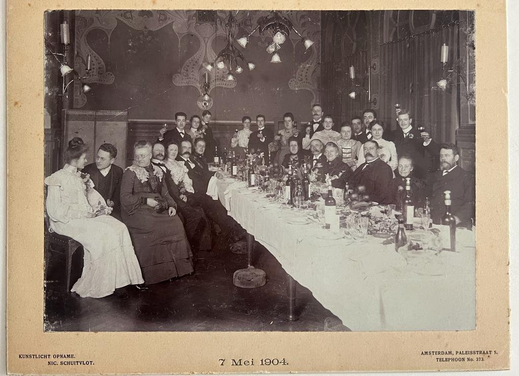| Titel: | Photography 1904 I Photography ca 1904 I Photo of several persons at dinner for the silver marriage of C.O. Roelofs, Amsterdam 7 may 1904, presented by H.L. Kleman Jr to the married couple. Photographer Nico Schuitvlot (Schuytvlot). In jugends... |