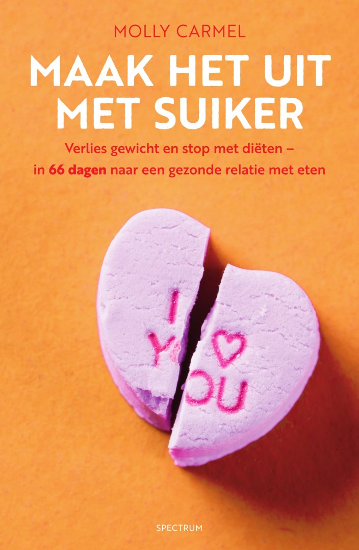 Verbreek je ongezonde relatie met koekjes en snoepjes. \n\nDit boek gaat over de psychische relatie die je hebt met suiker. Je wilt het laten staan en toch verdwijnt je hand in de droppot. En nog een keer. Met een slecht gevoel over jezelf en een nog knellendere broek. Voor iedereen die klaar is met balen van zijn of haar verstoorde relatie met zoete verleidingen is er nu Maak het uit met suiker. Voedings- én ervaringsdeskundige Molly Carmel geeft inzicht in de verslavende aantrekkingskracht van suiker en ze helpt je om te werken aan een gezonde relatie met eten. Met als doel: na 66 dagen ben je vrij van schuldgevoel en hunkeringen. Want als jij doof kan worden voor de lokroep van suiker, heb je geen dieet meer nodig.\n• Molly Carmel is een autoriteit én ervaringsdeskundige• Over fysieke en psychische effecten van suiker• Over de relatie jij wil met voeding en je lijf• Met recepten en een 66 dagen-plan• New year, new you!\n\nMolly Carmel wil mensen een permanente oplossing bieden in hun strijd tegen overgewicht. Mede omdat zij zelf ruim twintig jaar dieet na dieet heeft geprobeerd. Zij heeft na het overwinnen van haar suikerverslaving The Beacon opgericht, een centrum voor voeding en gedragsverandering.