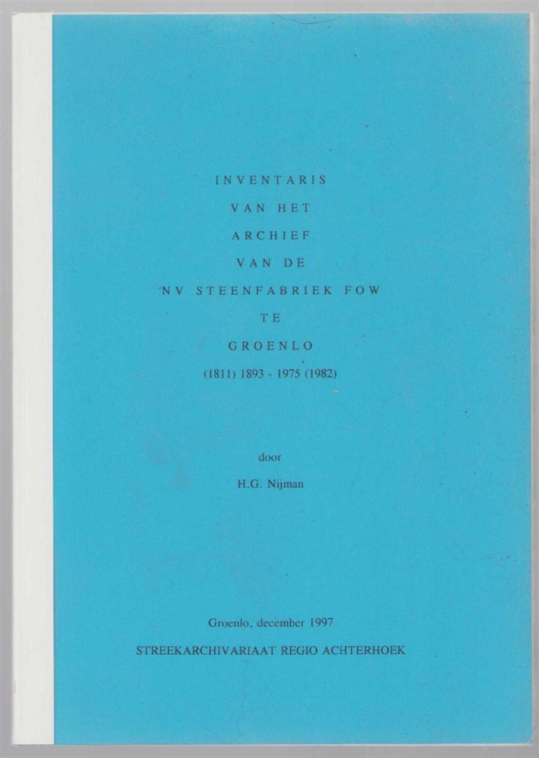 H G Nijman - Inventaris van het archief van de NV Steenfabriek