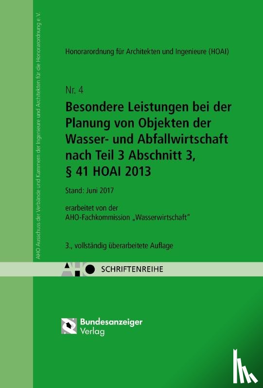 | Titel: | Besondere Leistungen bei der Planung von Objekten der Wasser- und Abfallwirtschaft nach Teil 3 Abschnitt 3, § 41 HOAI 2013 - AHO Heft 4 |