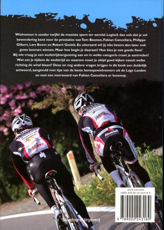 Wielrennen is zonder twijfel de mooiste sport ter wereld. Logisch dan ook dat je vol bewondering bent voor de prestaties van Tom Boonen, Fabian Cancellara, Philippe Gilbert, Lars Boom en Robert Gesink. En uiteraard wil jij niks lievers dan later ook grote koersen winnen. Maar hoe begin je daaraan? Hoe kies je een goede fiets? Bij wie vraag je een wedstrijdvergunning aan en in welke categorie moet je aantreden? Wat eet je tijdens de wedstrijd en waarom moet je altijd goed kijken vanuit welke richting de wind blaast? Deze en nog andere vragen krijgen in dit boek een duidelijk antwoord, aangevuld met tips van de beste beroepswielrenners uit de Lage Landen en met een voorwoord van Fabian Cancellara er bovenop.
