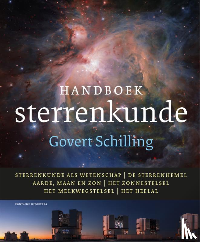 Flaptekst Dé vraagbaak voor iedere sterrenkundige. Dit ultieme basisboek voor de sterrenkunde - dat inmiddels aan de 14e druk toe is - zit tjokvol met nuttige informatie, schitterende illustraties en foto's, interessante weetjes, tips om zelf de sterrenhemel waar te nemen, en natuurlijk de nieuwste resultaten van het ruimteonderzoek. Het boek heeft een heldere vormgeving, en is geïllustreerd met prachtige kaarten en tekeningen.Sterrenkundejournalist Govert Schilling laat geen stukje van het heelal onbelicht. In 166 overzichtelijke spreads neemt hij de lezer mee langs zon, maan en planeten, via sterren, nevels en sterrenhopen naar melkwegstelsels, clusters en de geboorte van het heelal. Daarnaast maakt hij de amateur-astronooom wegwijs in wat er aan de sterrenhemel te zien is en helpt hij hem op weg bij het zelf waarnemen van maankraters, dubbelsterren en meteoren. Door de talloze kruisverwijzingen, de vele tabellen en het uitgebreide register is Handboek sterrenkunde ook een uitstekend sterrenkundig naslagwerk met heldere en begrijpelijke antwoorden op vragen als: - Wie heeft de telescoop uitgevonden?- Wat is een sterrenbeeld?- Wanneer is de volgende zonsverduistering?- Is er leven op Mars?- Hoe ontstaan zwarte gaten?- Waar ligt de rand van het heelal?Handboek sterrenkunde zet de deur naar het heelal wijd open! |