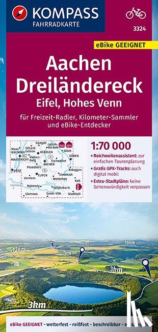 | Titel: | KOMPASS Fahrradkarte Aachen, Dreiländereck, Eifel, Hohes Venn 1:70.000, FK 3324 - reiß- und wetterfest mit Extra Stadtplänen |
