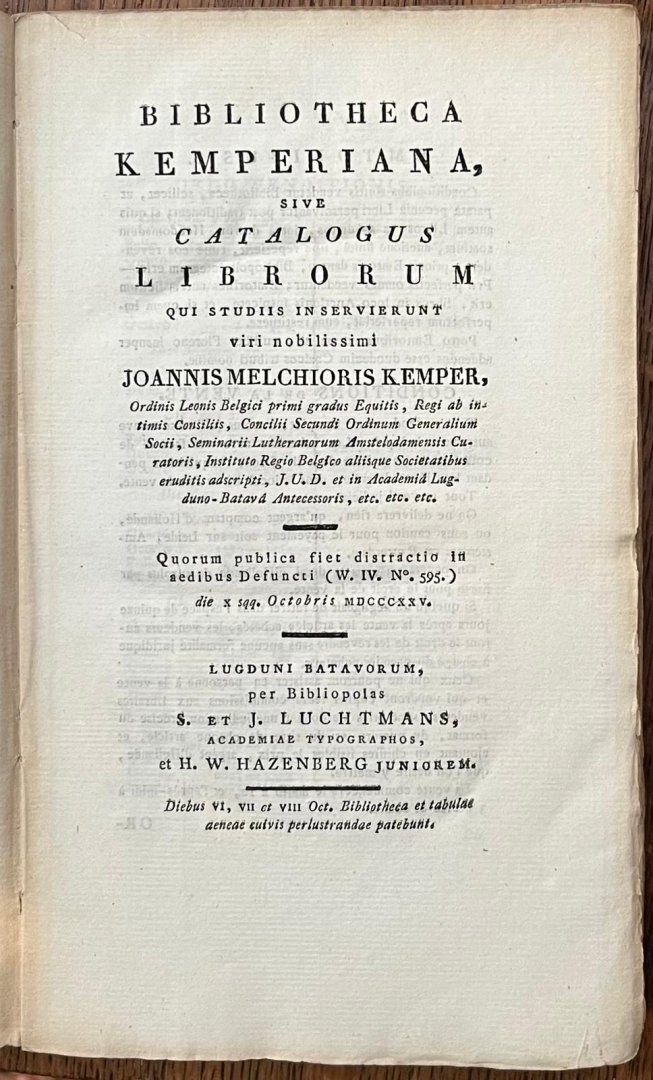 ![- Auction Catalogue, 1825, Kemper | Bibliotheca Kemperiana, sive Catalogus Librorum qui studiis inservierunt viri nobilissimi Joannis Melchioris Kemper (...). Leiden, S. et J. Luchtmans, 376 [2] 29 pp. - Auction Catalogue, 1825, Kemper | Bibliotheca Kemperiana, sive Catalogus Librorum qui studiis inservierunt viri nobilissimi Joannis Melchioris Kemper (...). Leiden, S. et J. Luchtmans, 376 [2] 29 pp.](https://images.boekwinkeltjes.nl/medium/OcEPaXkHQ8yhlhRl8VQQ.jpeg)
