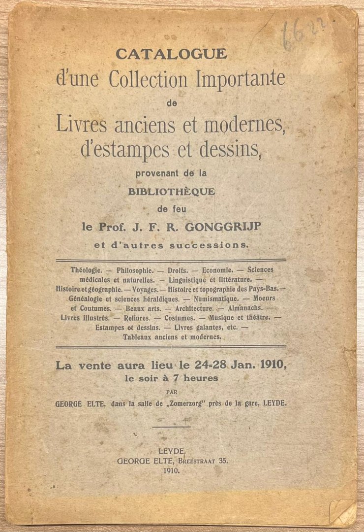 ![[Auction catalogue] - Auction Catalogue, 1910, Elte | Catalogue d'une Collection Importante de Livres anciens et modernes, d'estampes et dessins, provenant de la Bibliothèque de feu le Prof. J. F. R. Gonggrijp et d'autres successions. Leiden, George Elte, 1910, 122... [Auction catalogue] - Auction Catalogue, 1910, Elte | Catalogue d'une Collection Importante de Livres anciens et modernes, d'estampes et dessins, provenant de la Bibliothèque de feu le Prof. J. F. R. Gonggrijp et d'autres successions. Leiden, George Elte, 1910, 122...](https://images.boekwinkeltjes.nl/medium/nVShn5pyJF1ywWj6XQcT.jpeg)