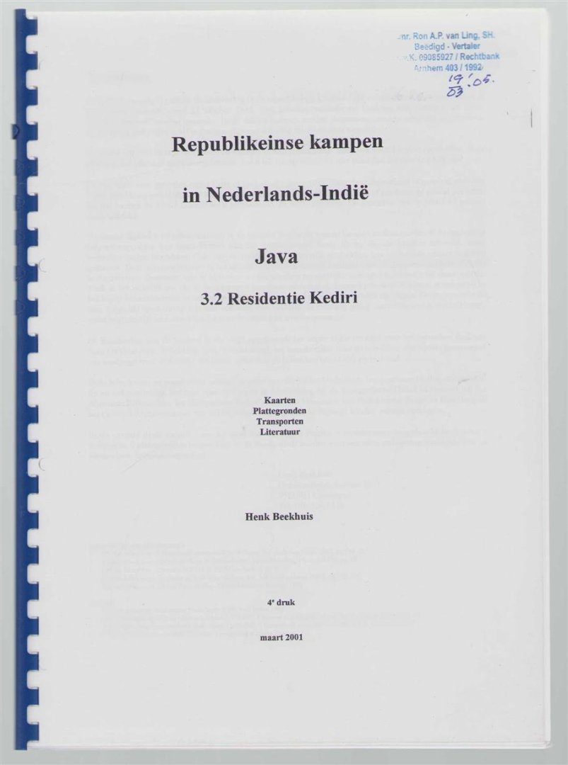 | Titel: | Republikeinse kampen in Nederlands-Indië - Java, 3.2. Residentie Kediri - kaarten plattegronden, transporten en literatuur |