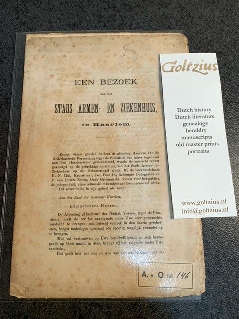 | Meer info: | Een bezoek aan het stads armen- en weeshuis te Haarlem. Extract/Offprint/Pamphlet? 1890, 10pp. foxed, with library ticket on front, no binding. Handwritten note on last page. |