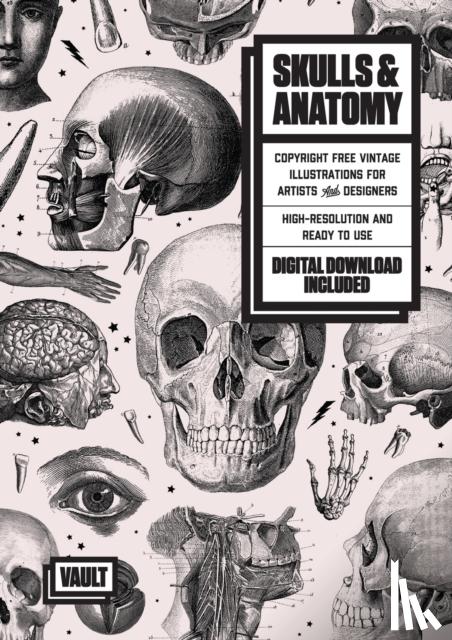Flaptekst Looking to level-up your art and impress your clients and peers?Skulls & Anatomy, Copyright Free Vintage Illustrations for Artists & Designers is a collection of 180 high quality, digitised, anatomical drawings for use in personal or commercial creative projects. This is an essential resource to take your art and design to the next level and give you a competitive advantage over your peers. Vault Editions' team of professional designers and illustrators have spent a lifetime hunting and restoring vintage woodcuts and engravings from around the world to create amazing artwork with. Now, we are opening the vault of our archives to the public.Within this collection, you will find rare, high-quality images carefully curated by our team of professional artists and designers who have used this imagery to create projects from gig-posters to identity design. We have carefully restored the artwork and provided a download link within the publication where you will locate high-resolution files in JPEG format as well as TIFF files with backgrounds removed to speed up your workflow.By collaging multiple images together, you can create impressive and dynamic designs in minutes that will impress both your clients and peers, no matter what your skill level is.We hope we can provide a useful resource for you and your creative practice. If you have any feedback about our collection, we would love to hear from you. You can contact us via info@vaulteditions.com |