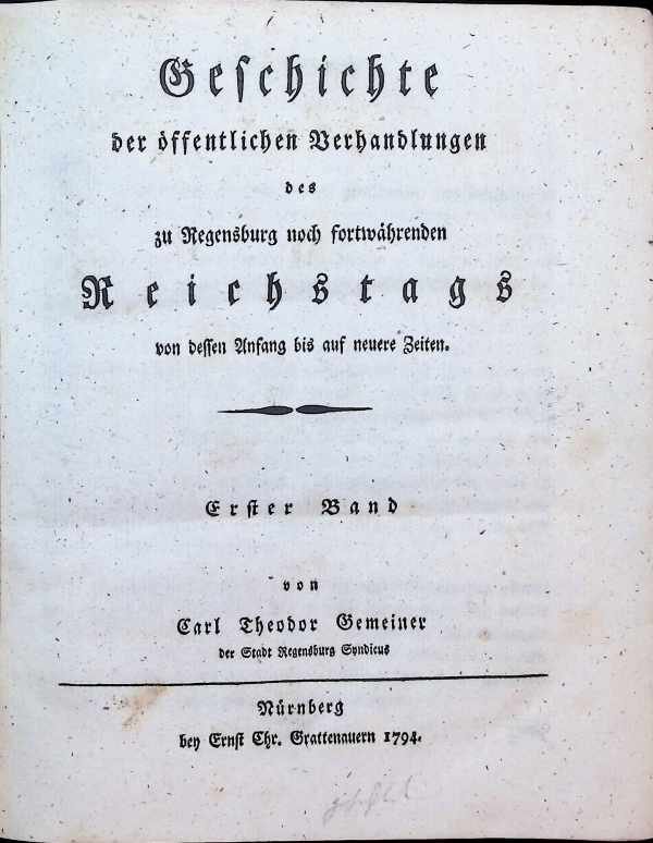 | Titel: | Geschichte der öffentlichen Verhandlungen des zu Regensburg noch fortwährenden Reichstags von dessen Anfang bis auf neuere Zeiten.: 2 Bände |