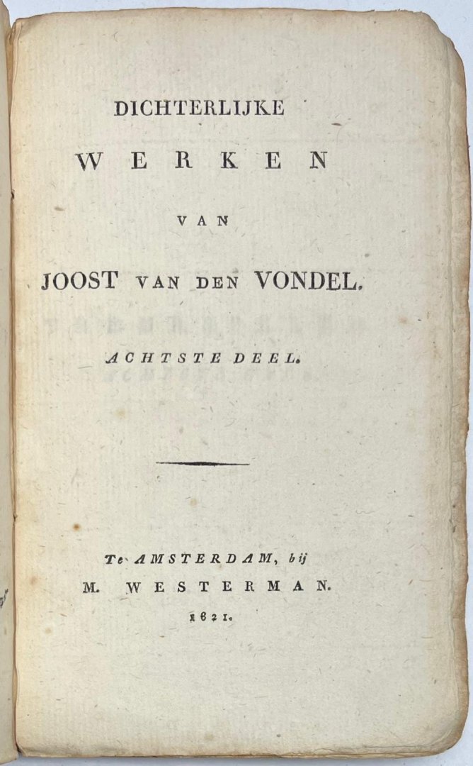 | Titel: | Two volumes, 1820-21, Vondel | Dichterlijke Werken van Joost van den Vondel. Parts 4 and 8. Amsterdam, M. Westerman, 1620-1621, two vols. |