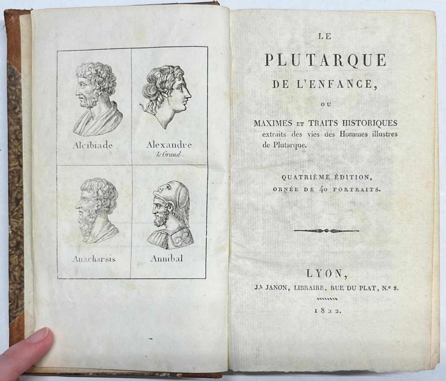 | Titel: | Antiquity, 1822, Biographies | Le Plutarque de l'Enfance, ou Maximes et Traits Historiques extraits des vies des Hommes illustres de Plutarque. Lyon, Jh Janon, 1822, 423 pp. |