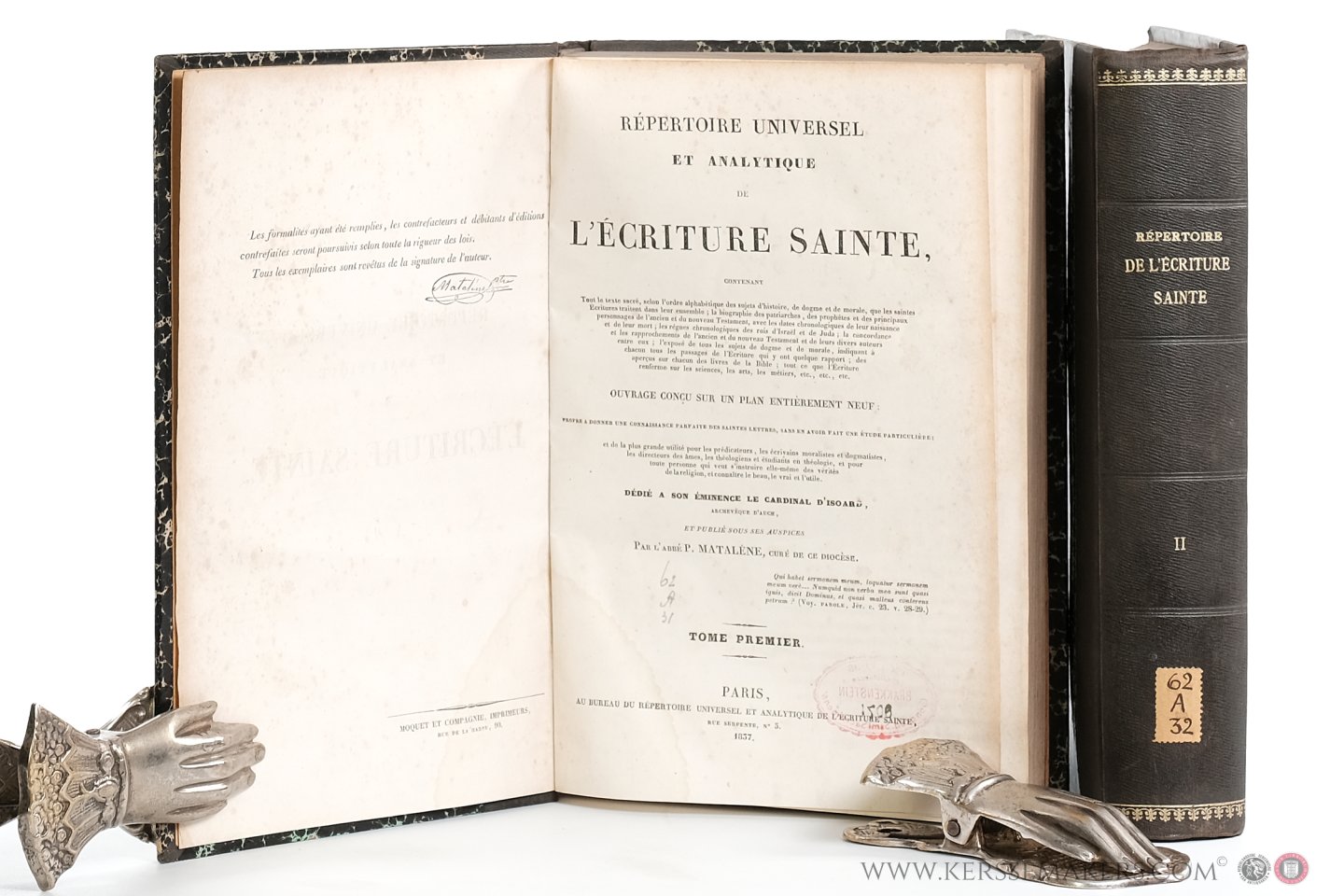 ![Mataléne, P. - Répertoire universel et analytique de l'écriture sainte contenant tout le texte sacré, selon l'ordre alphabetique des sujets d'histoire, de dogme et de morale, que les saintes ecritures traitent dans leur ensemble, etc... [ 2 volumes ]. Mataléne, P. - Répertoire universel et analytique de l'écriture sainte contenant tout le texte sacré, selon l'ordre alphabetique des sujets d'histoire, de dogme et de morale, que les saintes ecritures traitent dans leur ensemble, etc... [ 2 volumes ].](https://images.boekwinkeltjes.nl/medium/ZT1HQGZNOPW4i3IOMnuS.jpg)