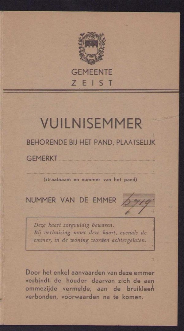 Dienst der gemeentewerken Zeist - vuilnisemmer (registratie kaa