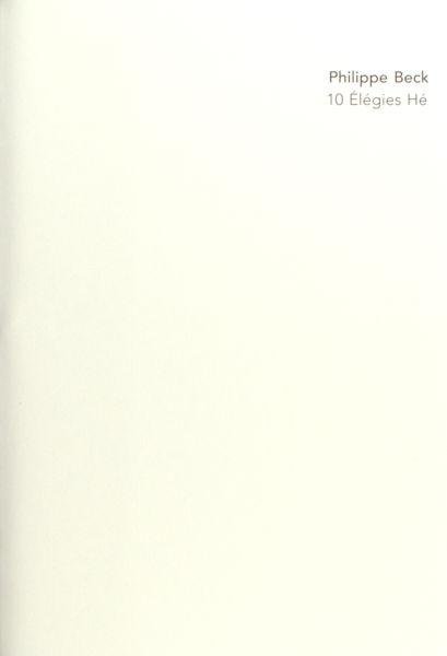 Meer info: 10 Élégies Hé. Gent, Druksel, 2005. (28) p. Cahiersteek. 126 exx. Eén van de 26 geletterde. Gesigneerd.