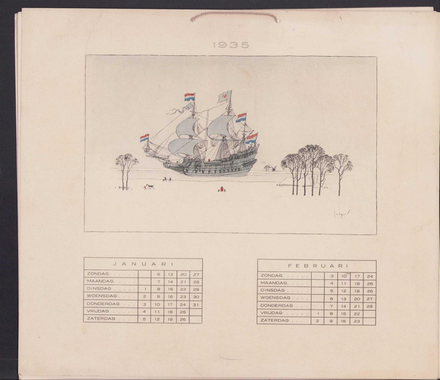 | Bijzonderheden: | 1935, Zeer goed, Kalender. 6 vellen met telkens 2 maanden. -- Zonder aantekeningen o.i.d. Zeer zeldzaam kleine locale oplage |