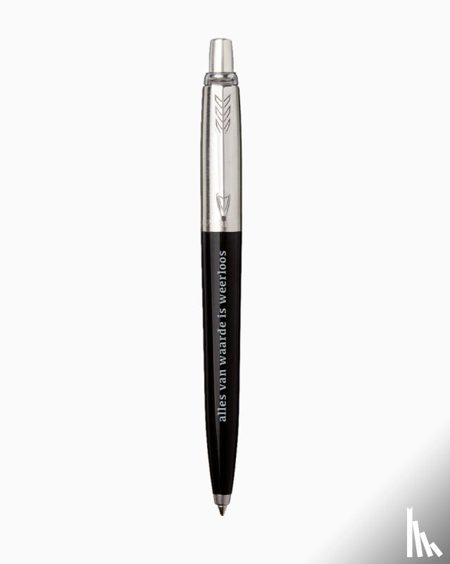 Flaptekst Parkerpen Jotter, een klassiek ontwerp uit 1954 (!). Deze pen is bedrukt met de tijdloze dichtregel van Lucebert uit het beroemde gedicht de zeer oude zingt. Navullingen zijn in verschillende diktes en kleuren te koop bij de kantoor-/vak-/boekhandel, dus dit is een pen voor de rest van je (lange en gelukkige) leven. In mooie geschenkverpakking. |