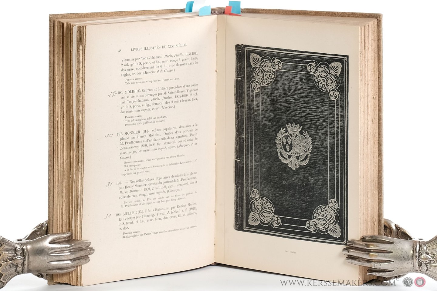 label on spine. Origial wrappers of all catalogues preserved. Uncut. Resp. 64, 80, 64, 72, 68, 114 and 190 pp. With several plates representing bindings. - Catalogues 1-6 with all the proceeds of the items written in ink. Catalogue 7: "Le reste de la collection". - All the catalogues of the library of Montgermont published by Édouard Rahir, 'Libraire de la Société des Bibliophiles François'.