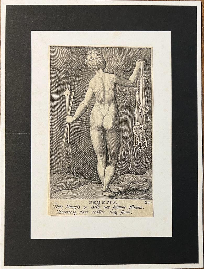 | Bijzonderheden: | Later printed engraving of Nemesis, originally made by Philips Galle (1537-1612). Used in De deis gentium by Philips Galle, Antwerpen 1581. A model book intended for the instruction of young artists and artisans, consisting of twenty-nine engravin... |