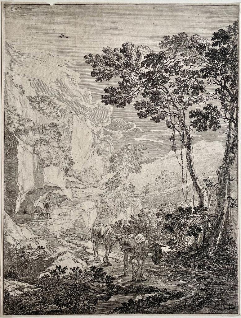 Jan Both (1618-1657) - Antique print, etching I The two hinnies