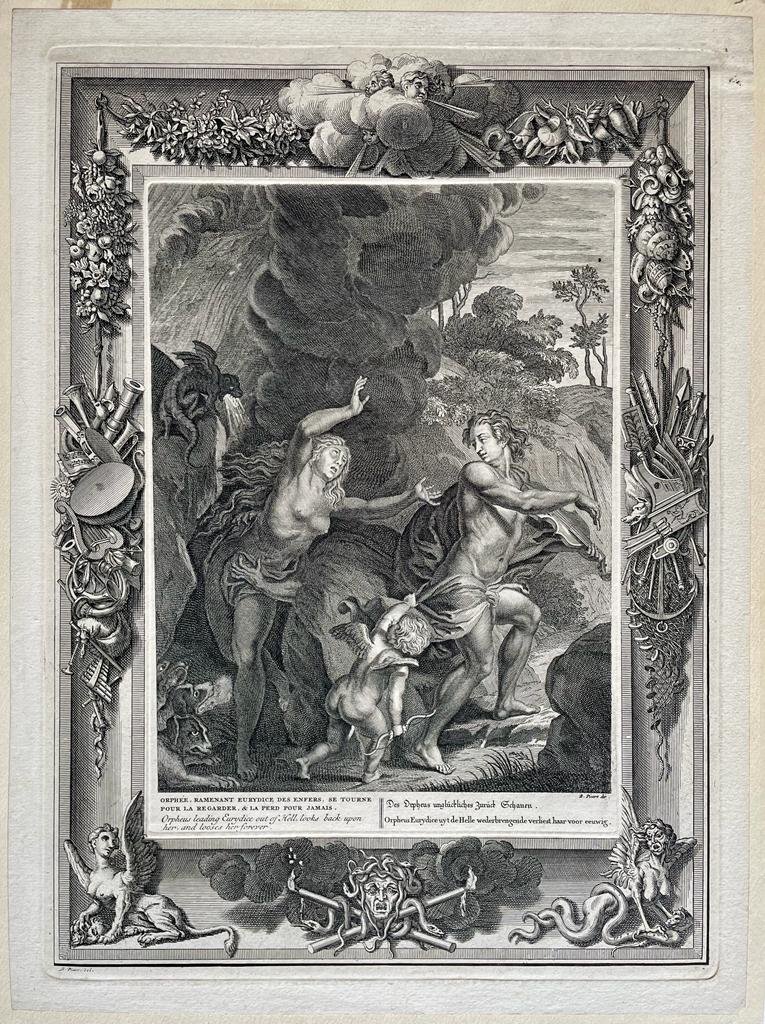 | Titel: | Antique print, etching | Orpheus and Euridice, published 1733, 1 p. |