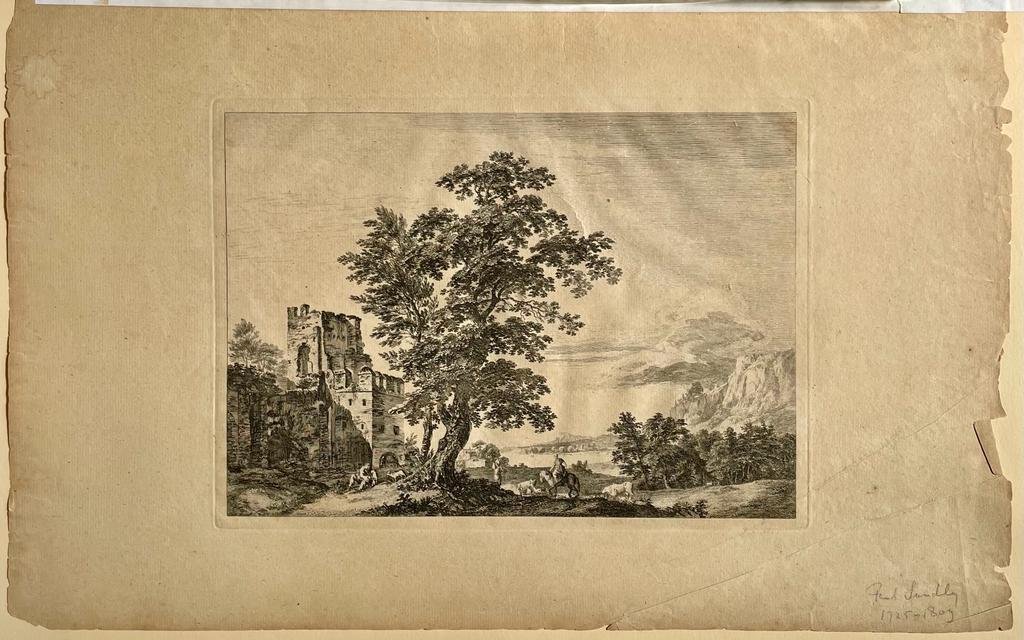 | Titel: | Antique print, etching I Landscape with travellers, published ca. 1640-1690, 1 p. |