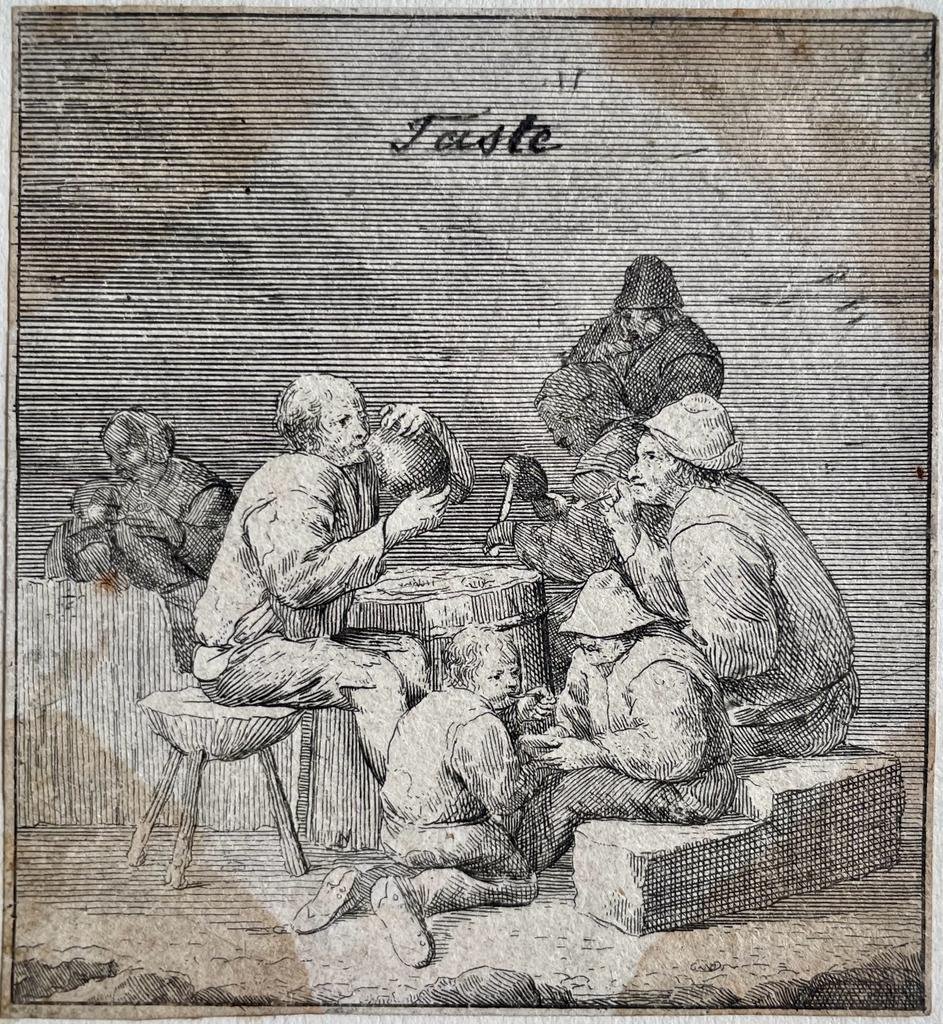 | Titel: | Antique print, etching I Taste (Allegorie van smaak), published ca. 1650, 1 p. |