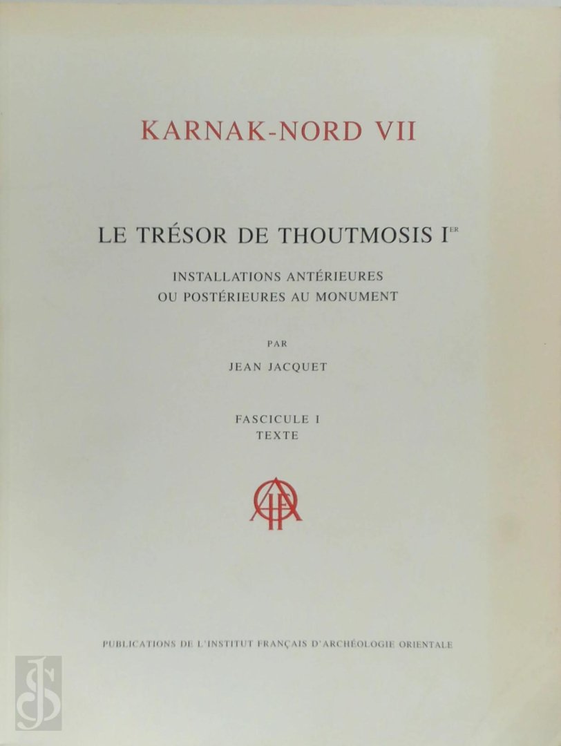 ![Jean Jacquet - Karnak-Nord VII. Le Trésor de Thoutmosis 1er [2 volumes] Installations antérieures out postérieures au monument. Fascicule I: Texte. Fascicule II: Planches Jean Jacquet - Karnak-Nord VII. Le Trésor de Thoutmosis 1er [2 volumes] Installations antérieures out postérieures au monument. Fascicule I: Texte. Fascicule II: Planches](https://images.boekwinkeltjes.nl/medium/IKoqzuhwfudIdAIkTfMp.jpg)
