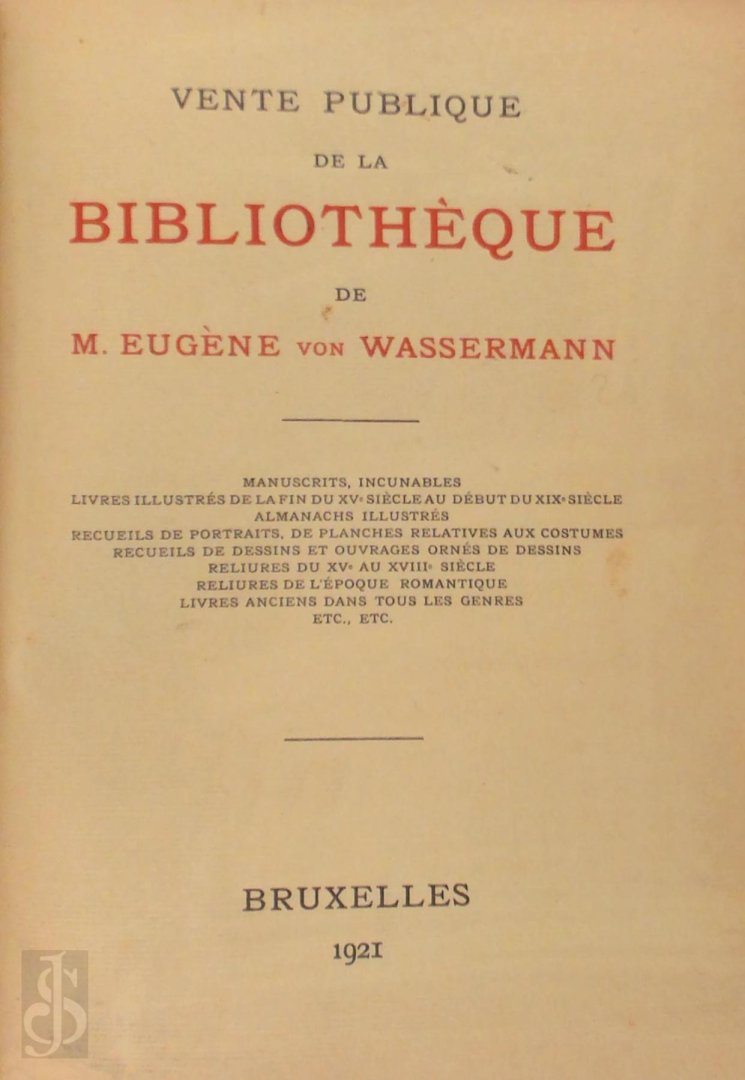 Vente publique de la bibliothèque de M. Eugene von Wassermann