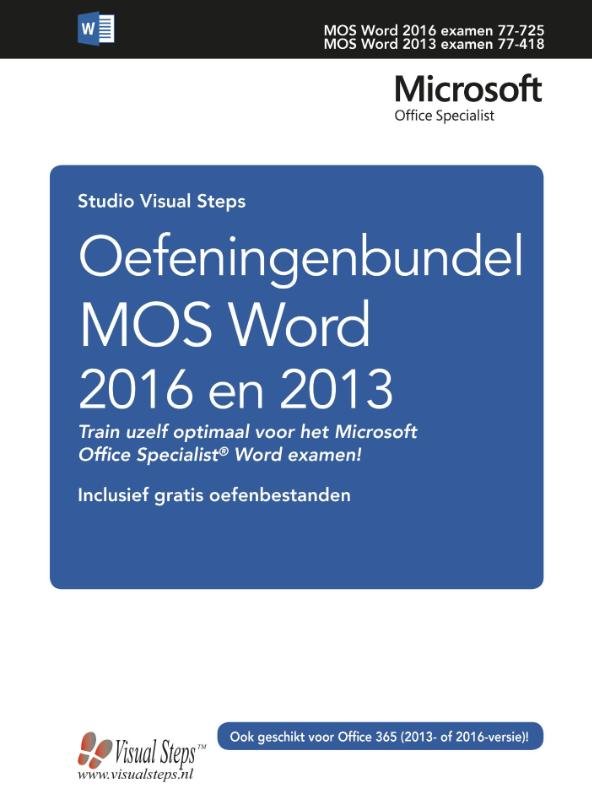 Deze oefeningenbundel is essentieel bij de voorbereiding op het Microsoft Office Specialist® examen (MOS). Werkt u het cursusboek MOS Word 2016 en 2013 door dan leert u hoe u de benodigde handelingen uitvoert in Word.Dit betekent echter nog niet dat u alle handelingen onder de knie heeft. De vele oefeningen in deze titel laten u nog eens extra oefenen via diverse typen opdrachten. Door deze extra training zorgt u ervoor dat u het examen haalt.In het boek staan oefeningen per hoofdstuk. Aan het eind van het boek staan oefeningen waarin de onderwerpen uit een aantal hoofdstukken zijn samengevoegd. Dit zijn de typen oefeningen:* Voetstapjes oefeningIn deze oefening staan handelingen waarbij een voetstapje staat. Deze zijn al bekend van het cursusboek. Als u niet meer weet hoe u een handeling uitvoert, kunt u dit met behulp van het cijfer achter het voetstapje opzoeken achter in het boek in de bijlage Hoe doe ik dat ook alweer?* Zelf aan de slag oefeningIn deze oefening staan handelingen zonder voetstapjes. Er wordt nu van u verwacht dat u de oefening kunt maken zonder dat u de voetstapjes nodig heeft.Aan het einde van de oefening wordt verwezen naar een resultaatbestand om dit te vergelijken met het Word-venster. Zo weet u of u de oefening goed gemaakt heeft.* MOS-examenoefeningenMet deze oefening traint u via een simulatie die wordt ingesteld op uw pc. U maakt zo kennis met hoe het examen eruit ziet en went zo aan de examenomgeving.Aan het einde van de oefening wordt verwezen naar een resultaatbestand om dit te vergelijken met het Word-venster. Zo weet u of u de oefening goed gemaakt heeft.In het boek staan oefeningen per hoofdstuk. Aan het eind van het boek staan oefeningen waarin de onderwerpen uit een aantal hoofdstukken zijn samengevoegd.Geschikt voor Word 2016 en 2013 of Word uit het Office 365-pakket.Bij dit boek hoort een website met oefenbestandenKijk voor meer informatie over het boek op www.visualstepsmosboeken.nl