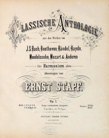 | Titel: | Classische anthologie aus den Werken von J.S. Bach, Beethoven, Händel, Haydn, Mendelssohn, Mozart & anderen für Harmonium allein übertragen. Op. 7. Heft 10 - 12. Neue veränderte Ausgabe |