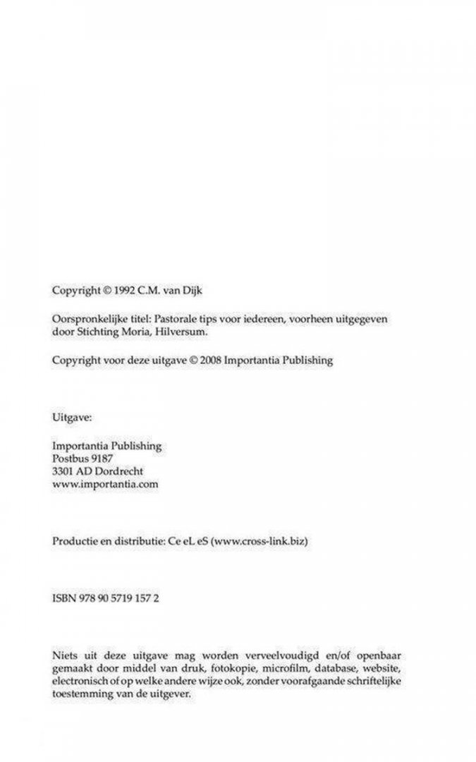 Dagelijkse problemen. Wie loopt er niet tegenaan? Dit boek geeft tips en bemoediging. Onzekerheid, het bouwen aan relaties en dagelijkse vernieuwing zijn een paar van de thema's die behandeld worden. Het boek vindt zijn oorsprong in de persoonlijke geloofsstrijd, maar had niet geschreven kunnen worden zonder de waardevolle lessen van anderen. Met het zoekregister bezit u ook een klein naslagwerk voor praktisch pastoraat. Clara M. van Dijk studeerde Duitse taal en letterkunde aan de Rijksuniversiteit in Groningen en vervolgens aan London Bible College (theologie) en University of the Nations USA (pastoraat). Zij was meerdere jaren verbonden aan Jeugd met een Opdracht.