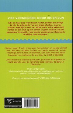 VIER VRIENDINNEN, DOOR DIK EN DUNEllie en haar drie vriendinnen vinden zichzelf een b je te dik. Ze willen alle vier wel graag afvallen, maar ze houden eigenlijk te veel van lekker eten. Vol goede moed richten ze een club op om samen te gaan werken aan een gezondere levensstijl. Maar goede voornemens uitvoeren is moeilijker dan ze denken...Morgen begin ik echt is een zeer humoristisch en luchtig verhaal over calorie roddelen, lachen, een beetje romantiek... en de krachtige band tussen vriendinnen. Een boek met een dike knipoog, voor iedereen die wel eens op dieet is geweest.Anita Notaro is televisie-producent, journalist en regisseur en heeft gewerkt voor de nationale lerse televisie, de BBC en Channel 4.Over eerder werk:'Notaro schrijft geweldig geestig, intelligent en met veel inzicht.' SUNDAY INDEPENDENTFris en zeer onderhoudend.' PATRICIA SCANLAN