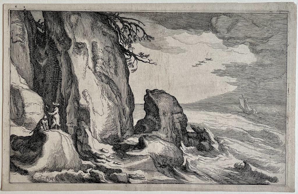 | Titel: | Antique print, engraving I View of a rocky coast (Gezicht op rotskust), published 1613-1614, 1 p. |