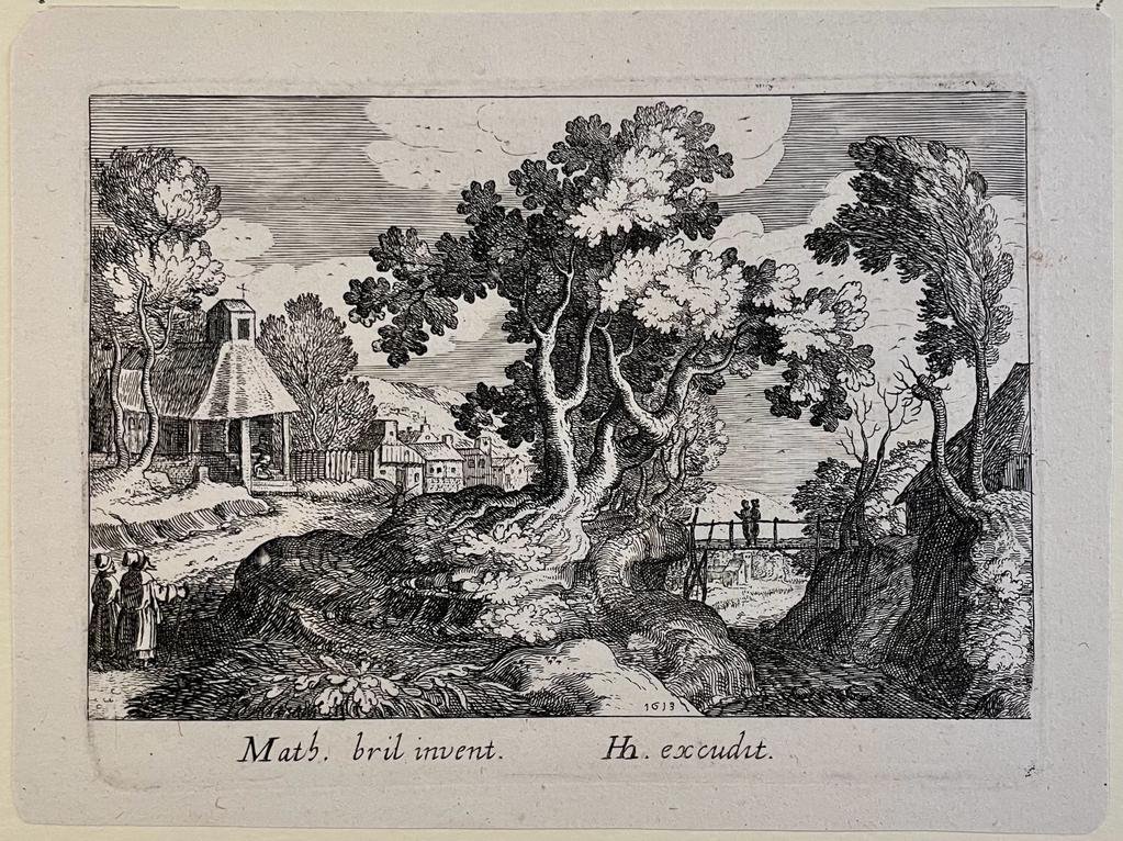 | Bijzonderheden: | Landscape with a river valley on right and church on a hill on the left.Signature and address in bottom margin: Mathias bril invent. / Hh excudit.From the set: Topographia Variarum Regionum, 1614, twenty-eight plates.Dated at bottom 1613.[NL] Land... |