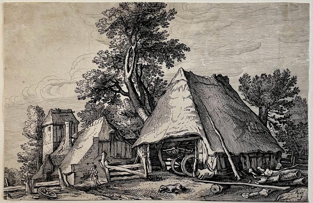 | Titel: | Antique print, etching | Farm with shed for a cart / Boerderij tussen het geboomte, published 1620, 1 p. |