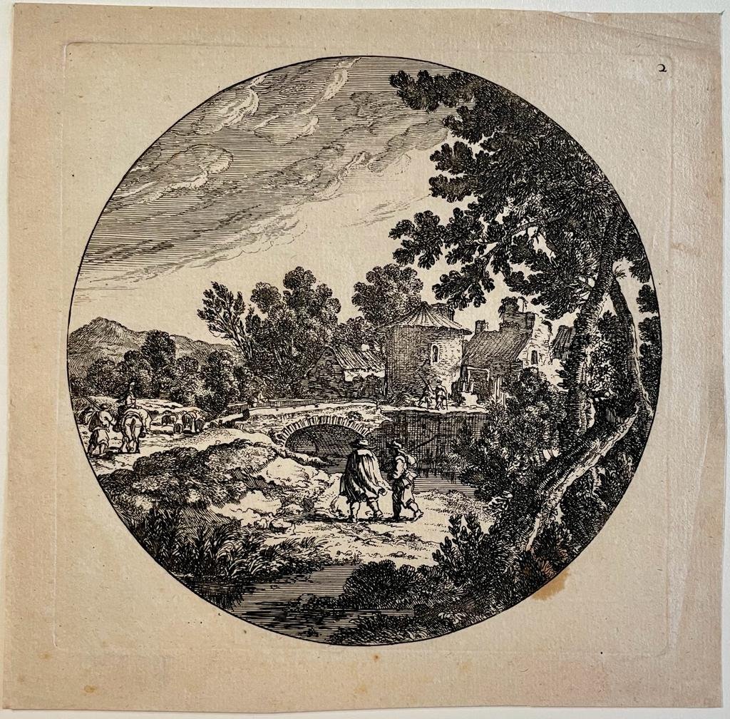 | Bijzonderheden: | Rounded Italianate landscape. A stone bridge. Two persons walking at center, two riders on the left; in the background, some buildings. On the right foreground, some trees.Numbered at top right: 2.<span style="font-size: 14.4px;">[NL] Zuidelijk la... |