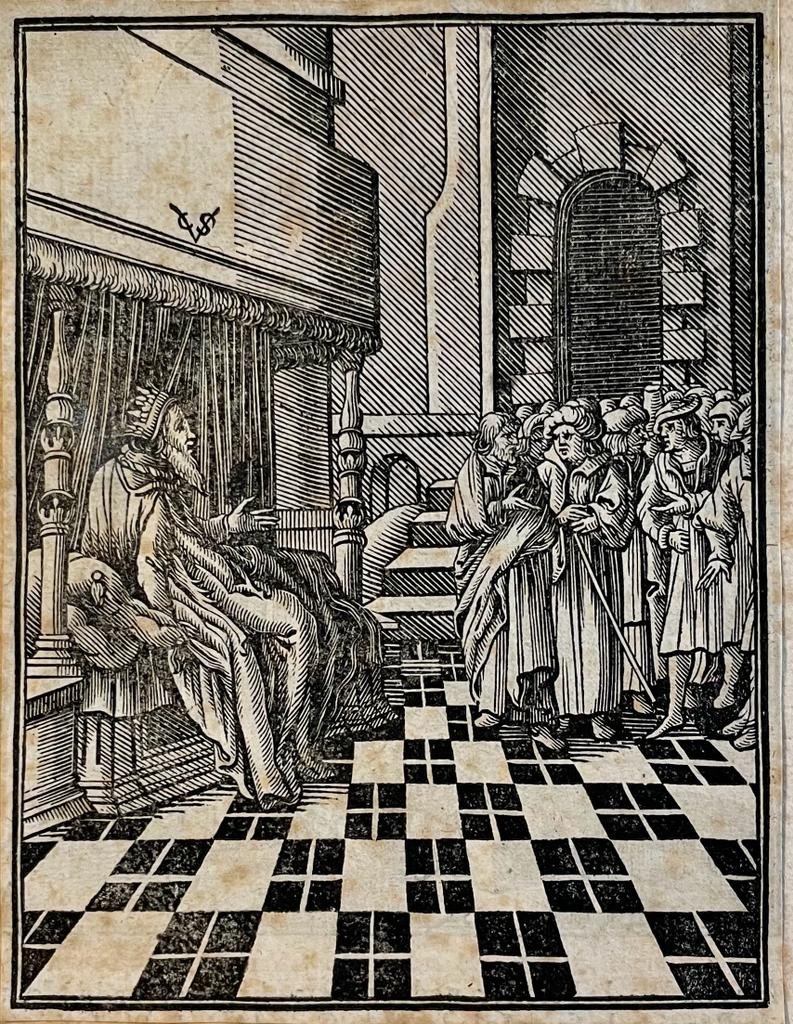 | Titel: | Antique print, woodcut | Last words from King David, published ca. 1645, 1 p. |