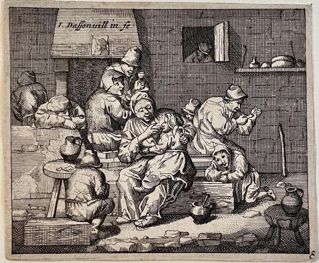 | Titel: | Antique print, etching | Peasant family in an interior, published ca. 1650, 1 p. |