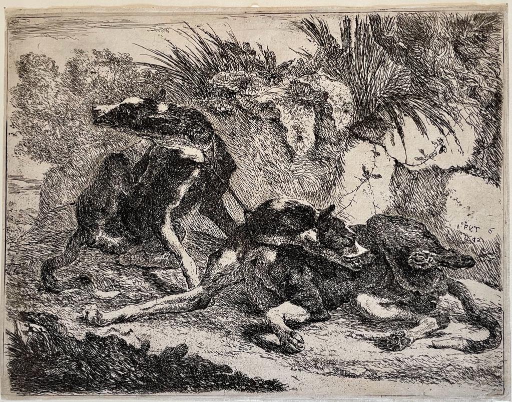Joannes Fijt (1611-1661) - Antique print, etching | Two dogs, p