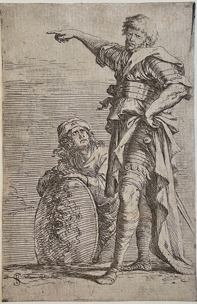 Salvator Rosa (1615-1673) - Antique print, etching | Two soldie