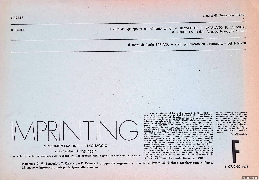 | Titel: | Imprinting Sperimentazione e il linguaggio sul (dentro il) linguaggio |