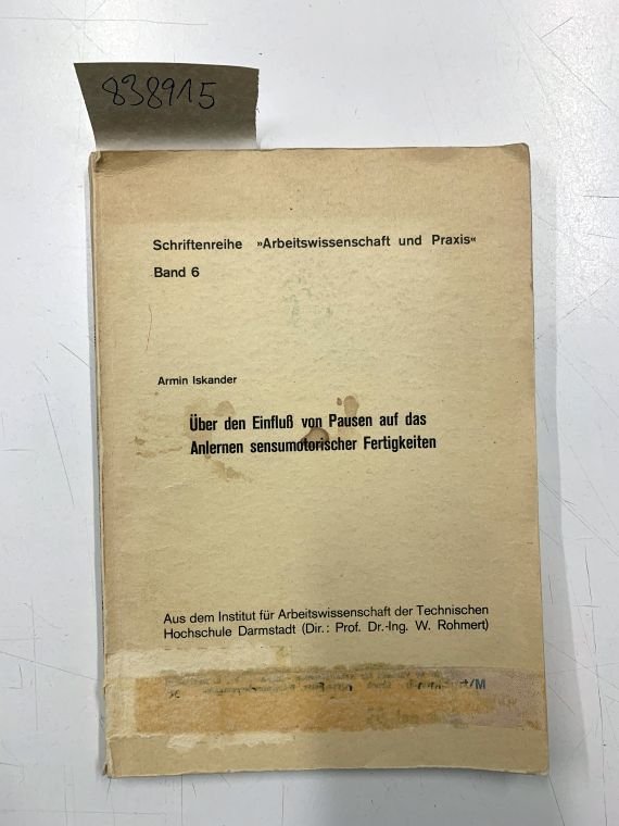 | Titel: | Über den Einfluss von Pausen auf das Anlernen sensumotorischer Fertigkeiten Arbeitswissenschaft und Praxis 6 |