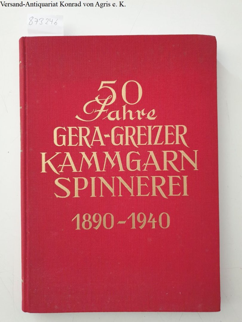 | Titel: | 50 Jahre Gera-Greizer Kammgarnspinnerei ( 1890 - 1940). mit kulturgeschichtlichen Beiträgen zur Entwicklung der Geraer Textilindustrie |