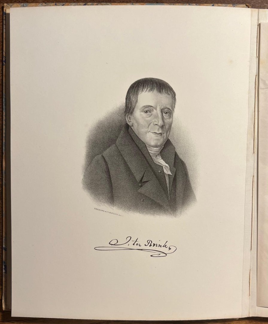 | Bijzonderheden: | With lithographed portraits of Ten Brink and De Vries by Tresling. Catalogue of books (Fonds-catalogus) published or bought by Ten Brink and De Vries.Publication printed in a limited number (not a trade edition) on the life and career of Jan ten B... |